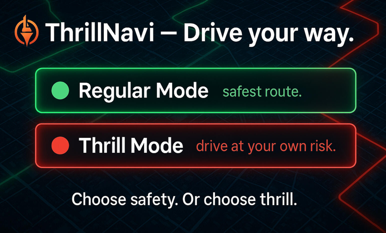 Watch how ThrillNavi lets you choose “Safe” or “Thrill” mode for any route.